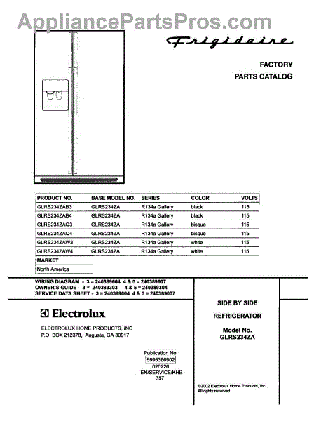 Parts for Frigidaire GLRS234ZAB3: 01 - Cover Parts