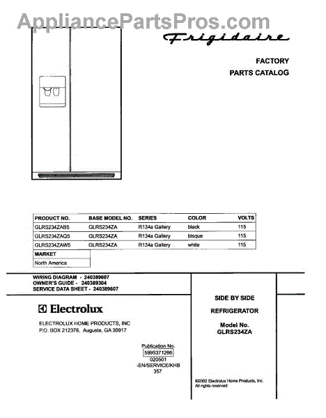 Parts for Frigidaire GLRS234ZAQ5: 01 - Cover Parts