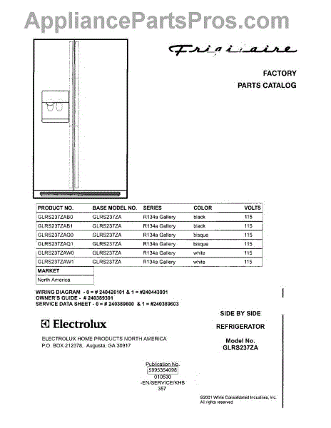 Parts for Frigidaire GLRS237ZAQ0: 01 - Cover Parts