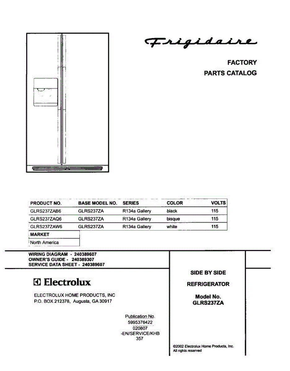 Parts for Frigidaire GLRS237ZAQ6: 01 - Cover Parts