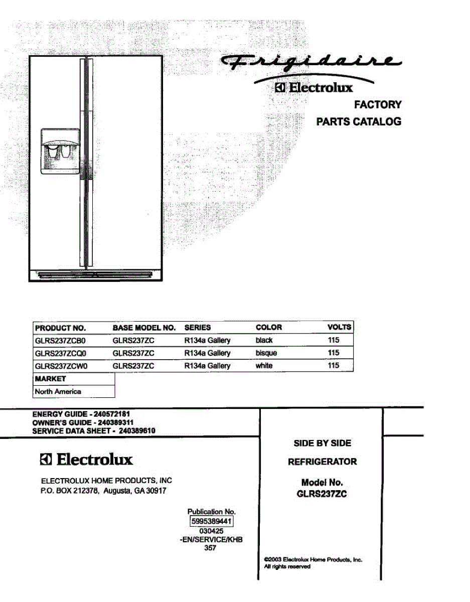 Parts for Frigidaire GLRS237ZCQ0: 01 - Cover Parts