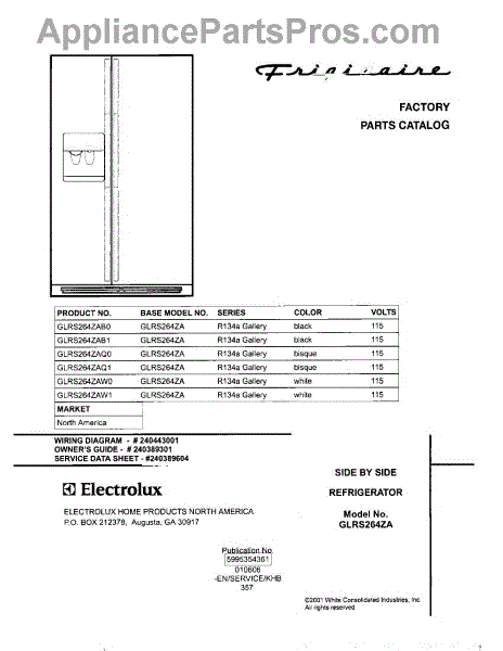 Parts for Frigidaire GLRS264ZAB1: 01 - Cover Parts