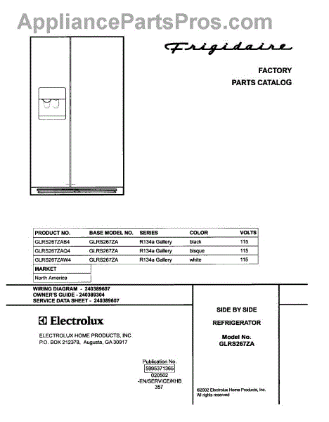 Parts for Frigidaire GLRS267ZAQ4: 01 - Cover Parts