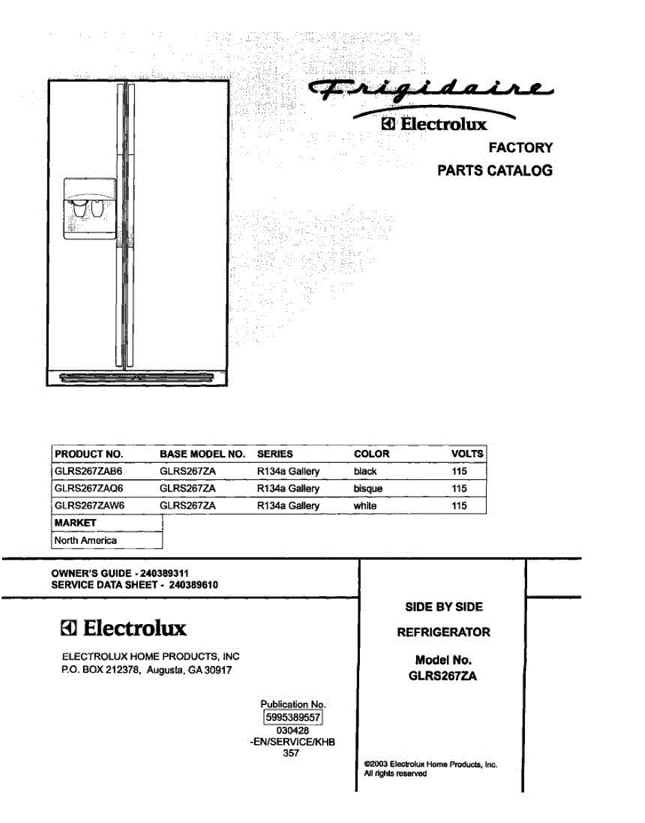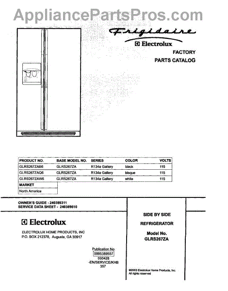 Parts for Frigidaire GLRS267ZAQ6: 01 - Cover Parts