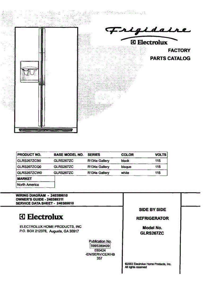 Parts for Frigidaire GLRS267ZCW0: 01 - Cover Parts
