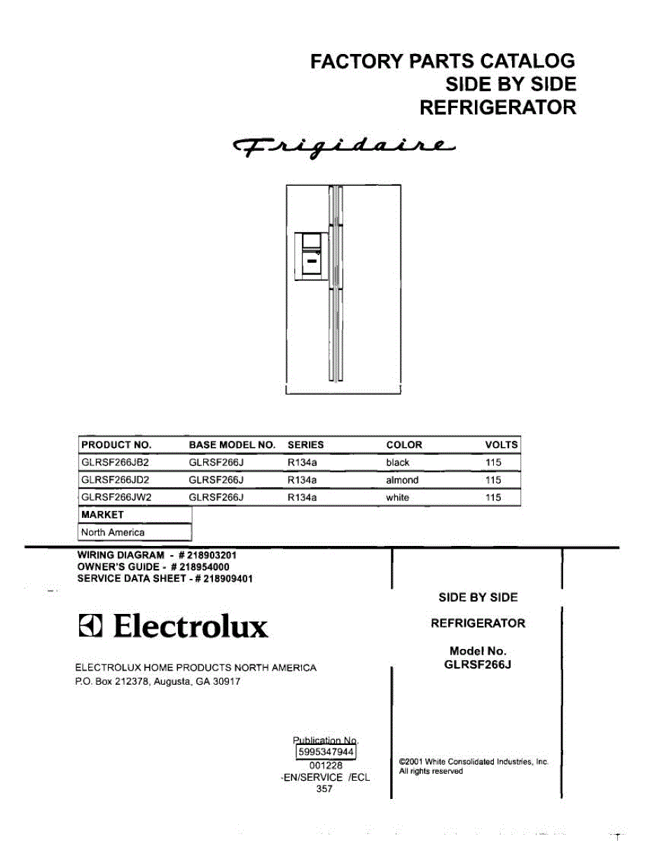 Parts for Frigidaire GLRSF266JW2: 01 - Cover Parts