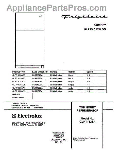 Parts for Frigidaire GLRT182SAB5: 01 - Cover Parts