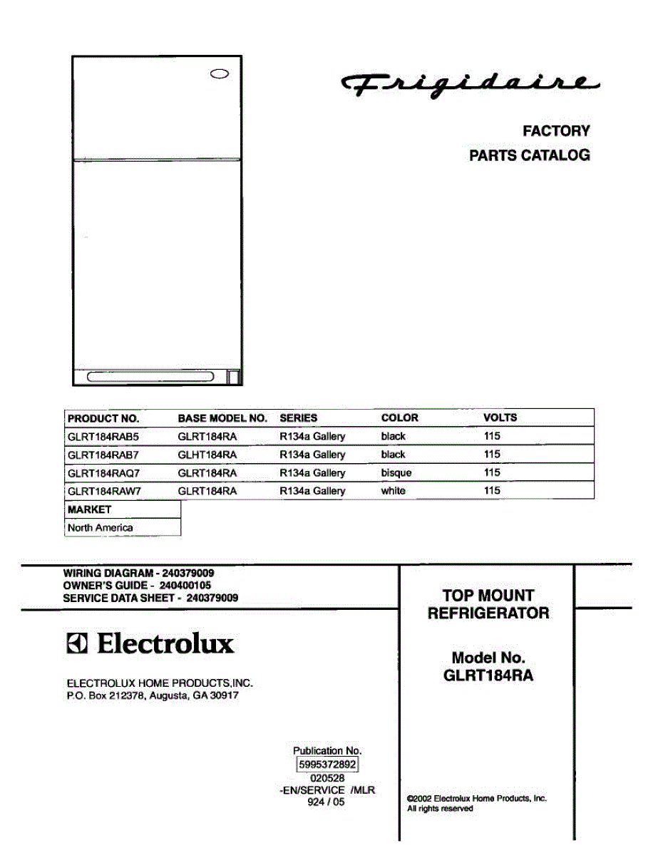 Parts for Frigidaire GLRT184RAQ7: 01 - Cover Parts