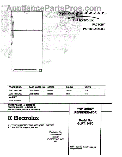 Parts for Frigidaire GLRT184TCQ0: 01 - Cover Parts