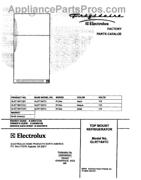 Parts for Frigidaire GLRT184TCW1: 01 - Cover Parts