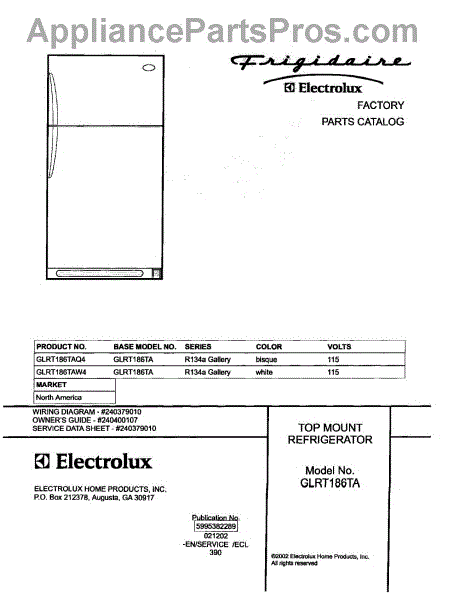 Parts for Frigidaire GLRT186TAW4: 01 - Cover Parts