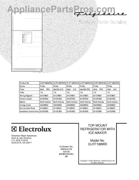 Parts for Frigidaire GLRT188WDK8: 01 - Cover Parts