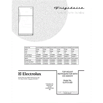 Parts for Frigidaire GLRT212IDW3: 01 - Cover Parts