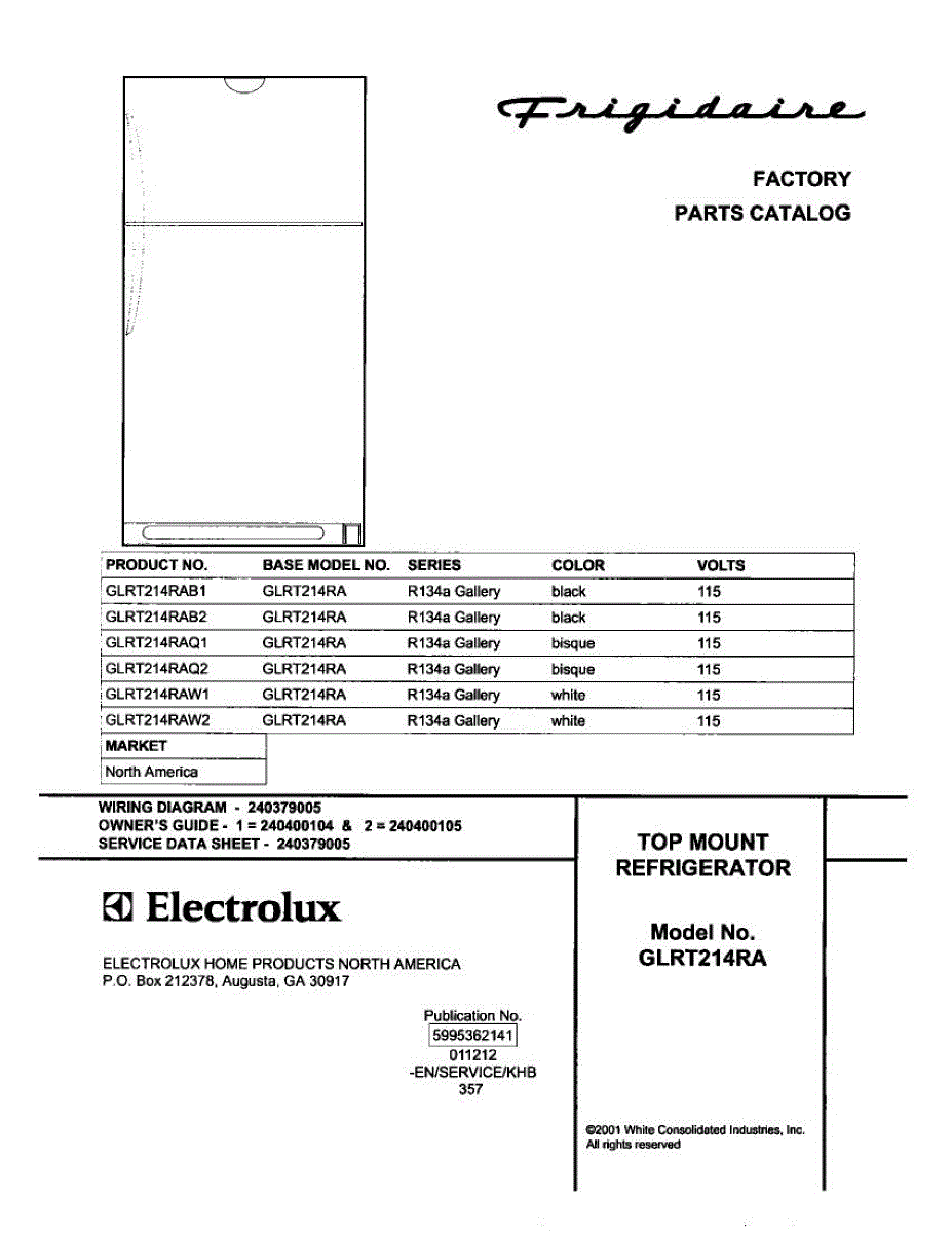 Parts for Frigidaire GLRT214RAQ1: 01 - Cover Parts