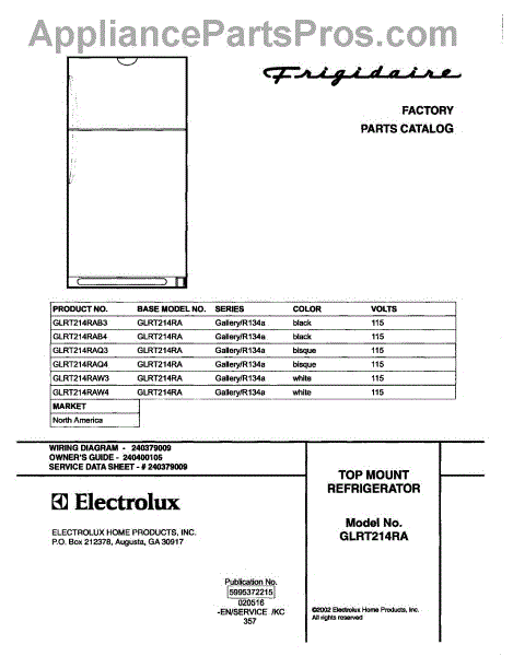 Parts for Frigidaire GLRT214RAQ3: 01 - Cover Parts