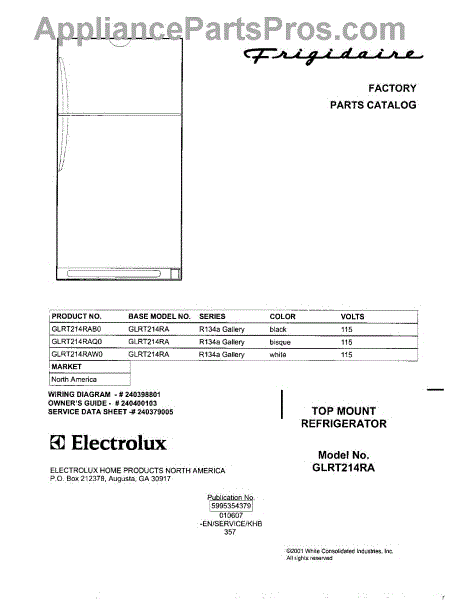 Parts for Frigidaire GLRT214RAW0: 01 - Cover Parts