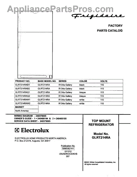 Parts for Frigidaire GLRT214RAW2: 01 - Cover Parts