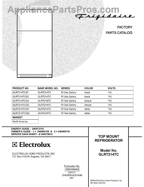 Parts for Frigidaire GLRT214TCB1: 01 - Cover Parts