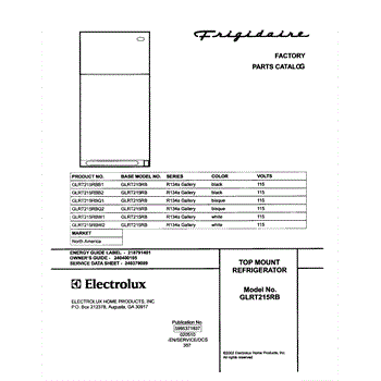 Parts for Frigidaire GLRT215RBW2: 01 - Cover Parts