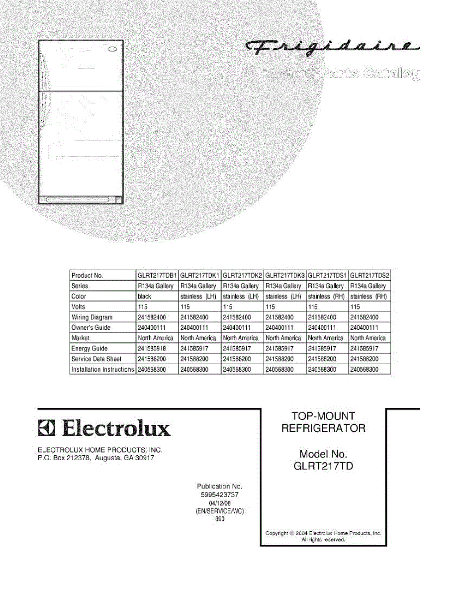 Parts for Frigidaire GLRT217TDB1: 01 - Cover Parts