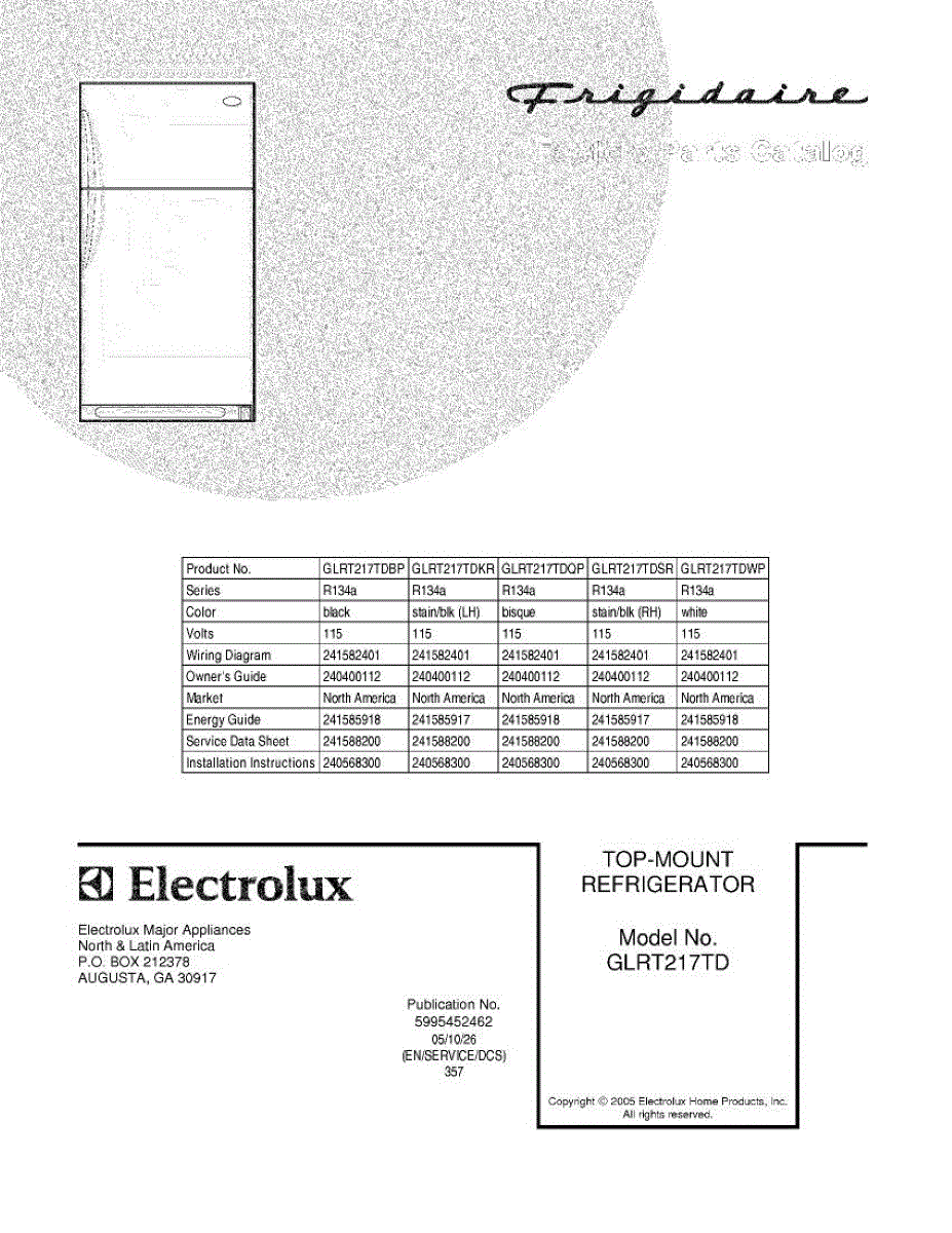 Parts for Frigidaire GLRT217TDKR: 01 - Cover Parts