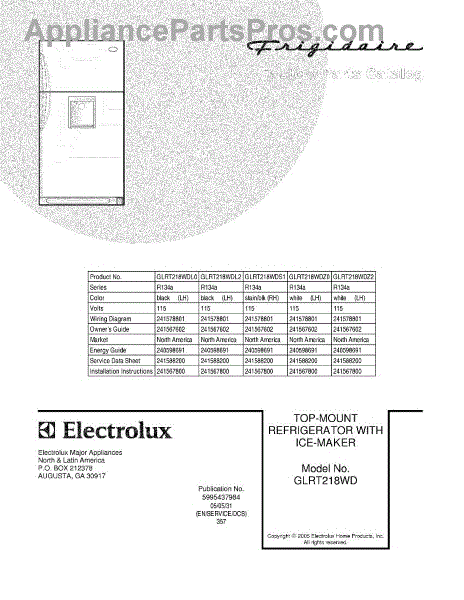 Parts for Frigidaire GLRT218WDL2: 01 - Cover Parts