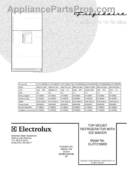 Parts for Frigidaire GLRT218WDQ9: 01 - Cover Parts