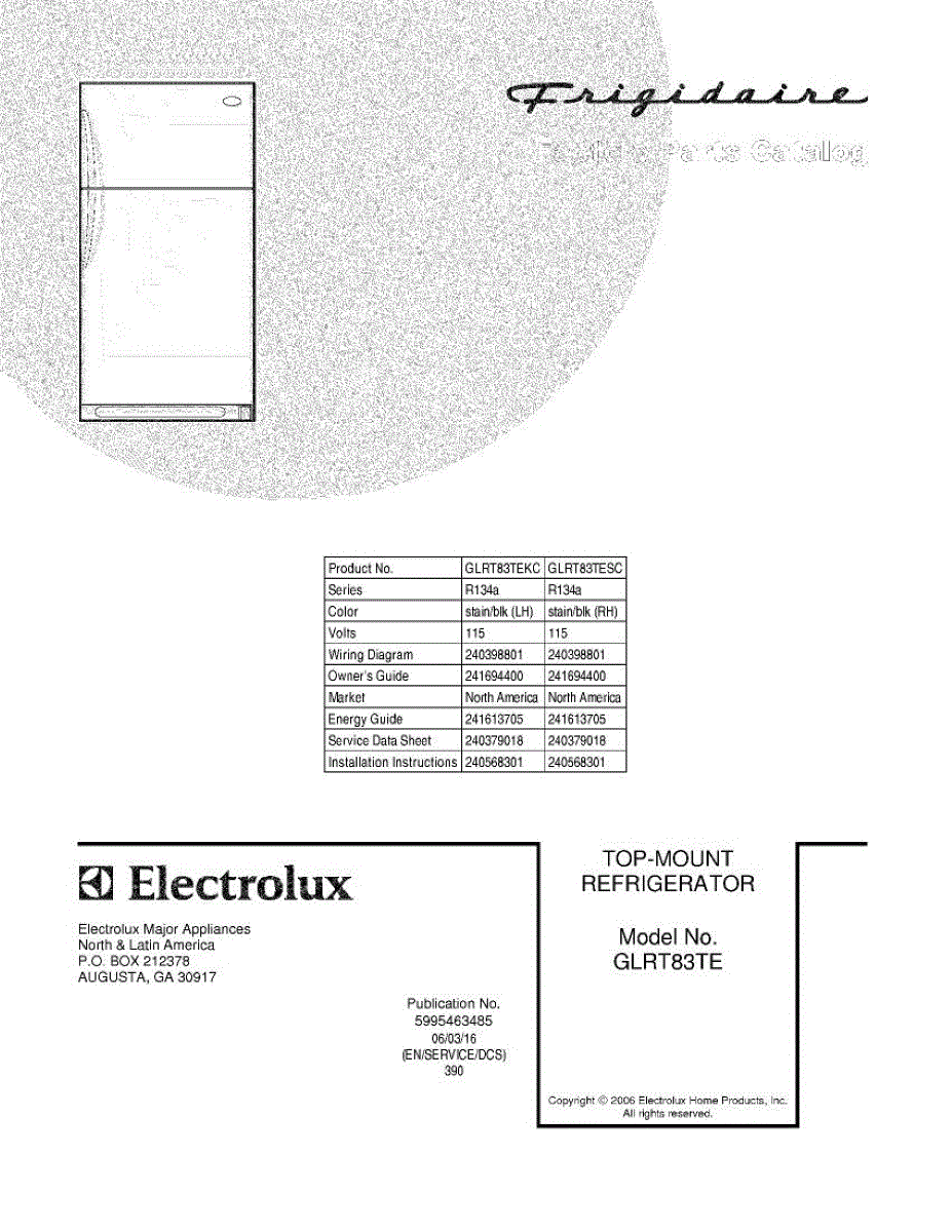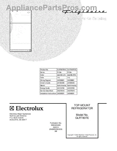 Parts for Frigidaire GLRT83TEKC: 01 - Cover Parts