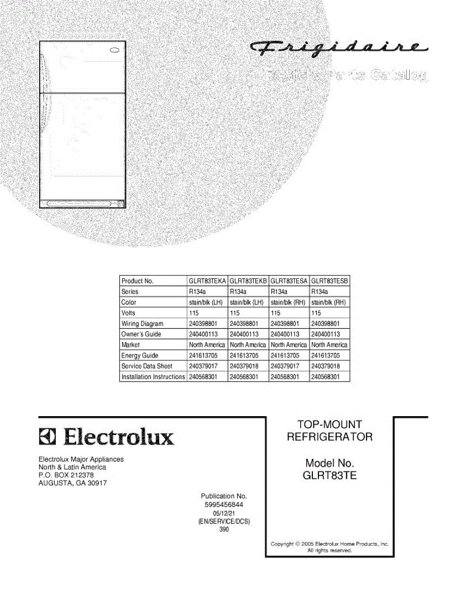 Parts for Frigidaire GLRT83TESA: 01 - Cover Parts