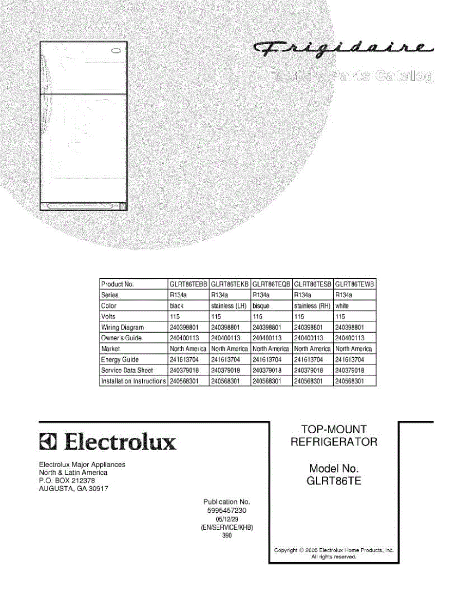 Parts for Frigidaire GLRT86TEBB: 01 - Cover Parts