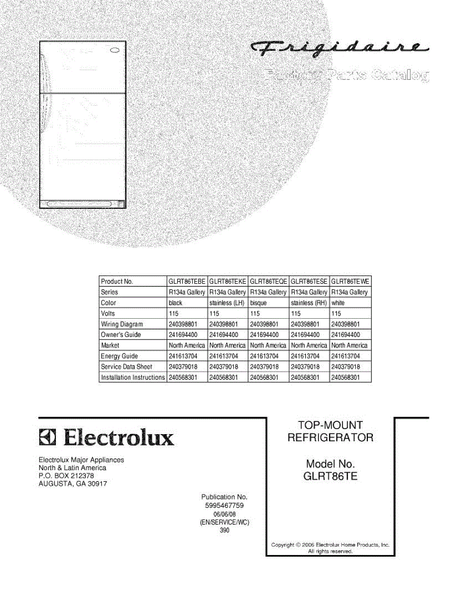 Parts for Frigidaire GLRT86TEBE: 01 - Cover Parts