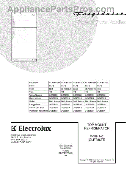Parts for Frigidaire GLRT86TEKA: 01 - Cover Parts