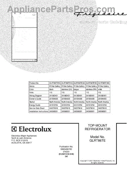 Parts for Frigidaire GLRT86TEKG: 01 - Cover Parts