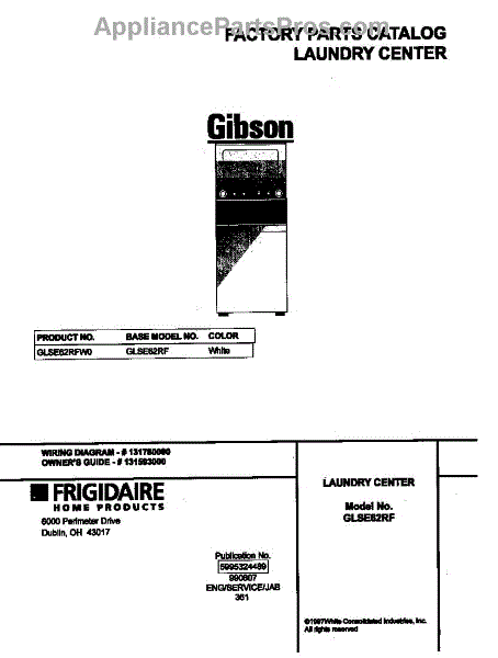 Parts for Frigidaire GLSE62RFW0: 01 - Cover Parts