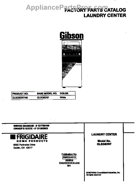 Parts for Frigidaire GLSG62RFW0: 01 - Cover Parts