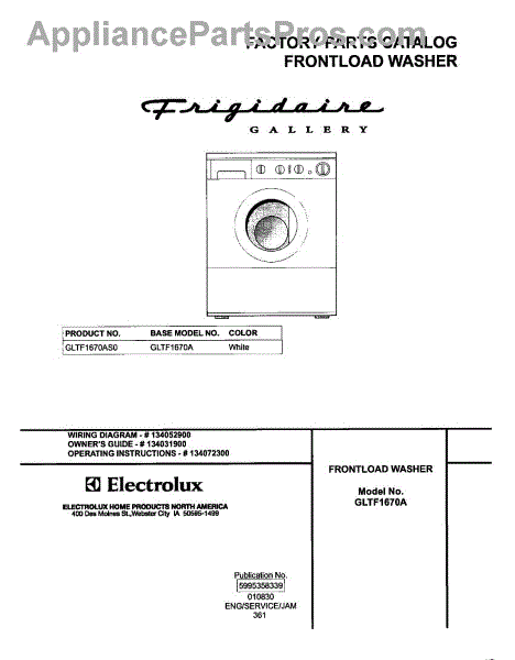 Parts for Frigidaire GLTF1670AS0: 01 - Cover Parts