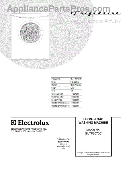 Parts for Frigidaire GLTF2070CS0: 01 - Cover Parts