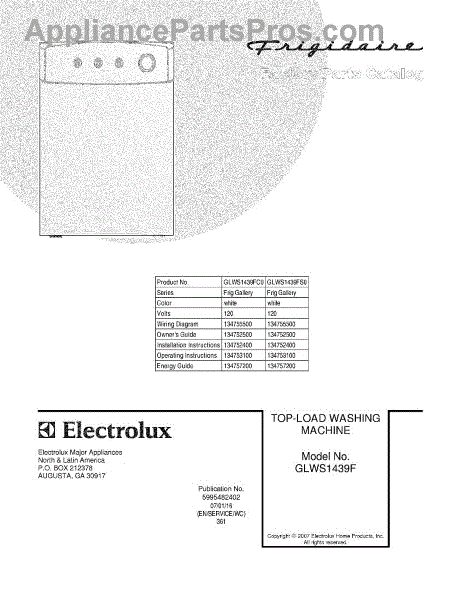 Parts for Frigidaire GLWS1439FS0: 01 - Cover Parts