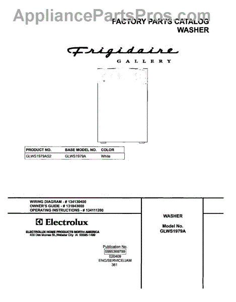 Parts for Frigidaire GLWS1979AS2: 01 - Cover Parts