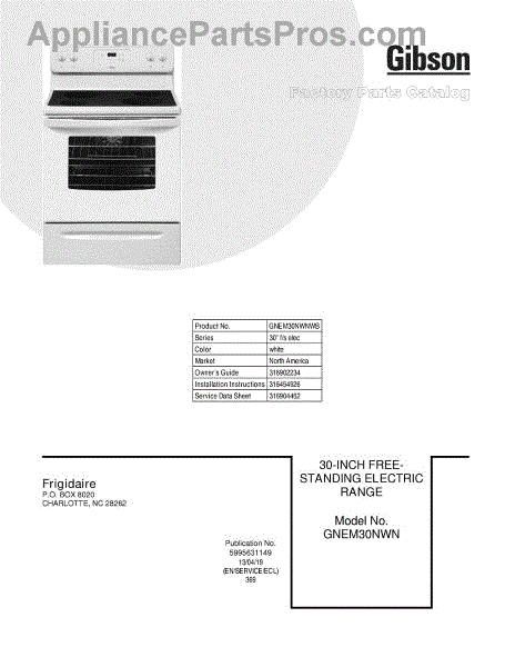 Parts for Frigidaire GNEM30NWNWB: 01 - Cover Parts