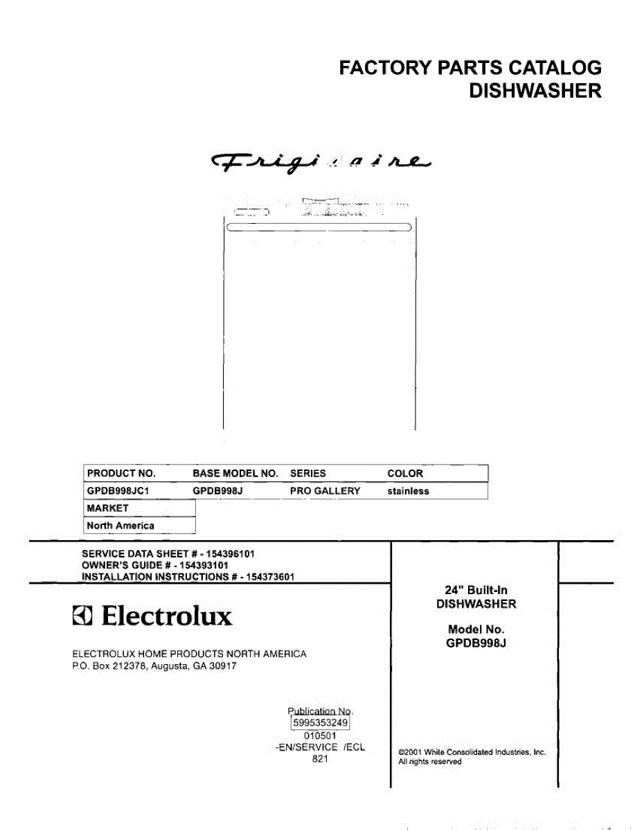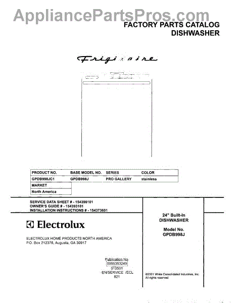 Parts for Frigidaire GPDB998JC1: 01 - Cover Parts