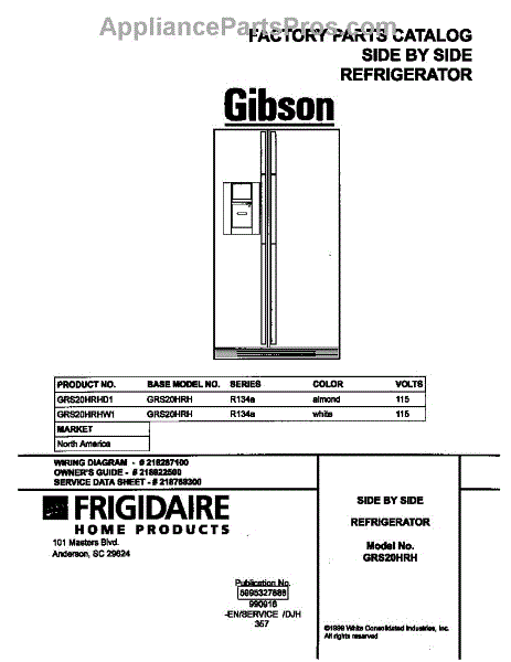 Parts for Frigidaire GRS20HRHD1: 01 - Cover Parts