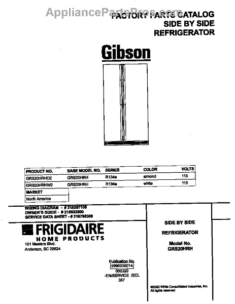 Parts for Frigidaire GRS20HRHD2: 01 - Cover Parts