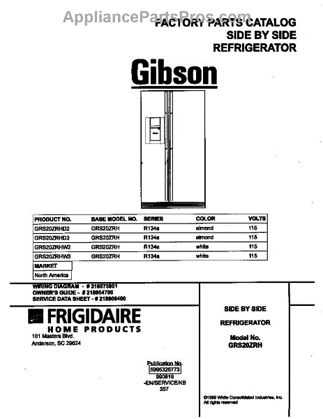 Parts for Frigidaire GRS20ZRHW3: 01 - Cover Parts