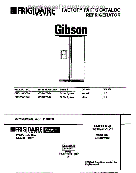 Parts for Frigidaire GRS22WNCW4: 01 - Cover Parts