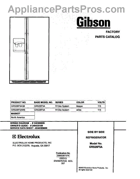Parts for Frigidaire GRS26F5AW6: 01 - Cover Parts