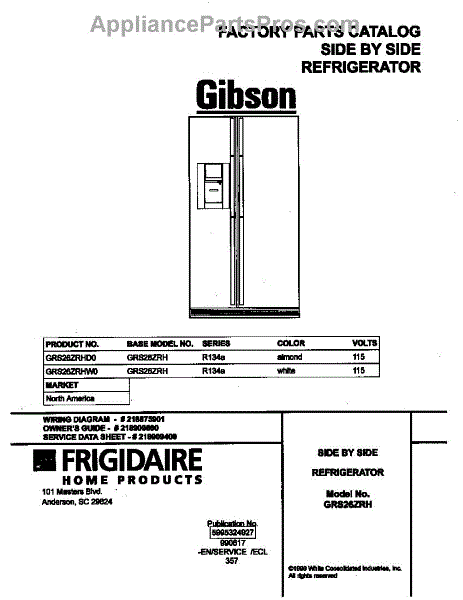 Parts for Frigidaire GRS26ZRHD0: 01 - Cover Parts