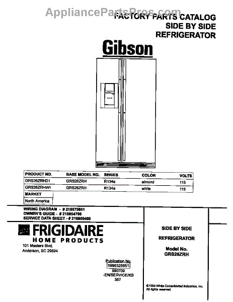 Parts for Frigidaire GRS26ZRHD1: 01 - Cover Parts