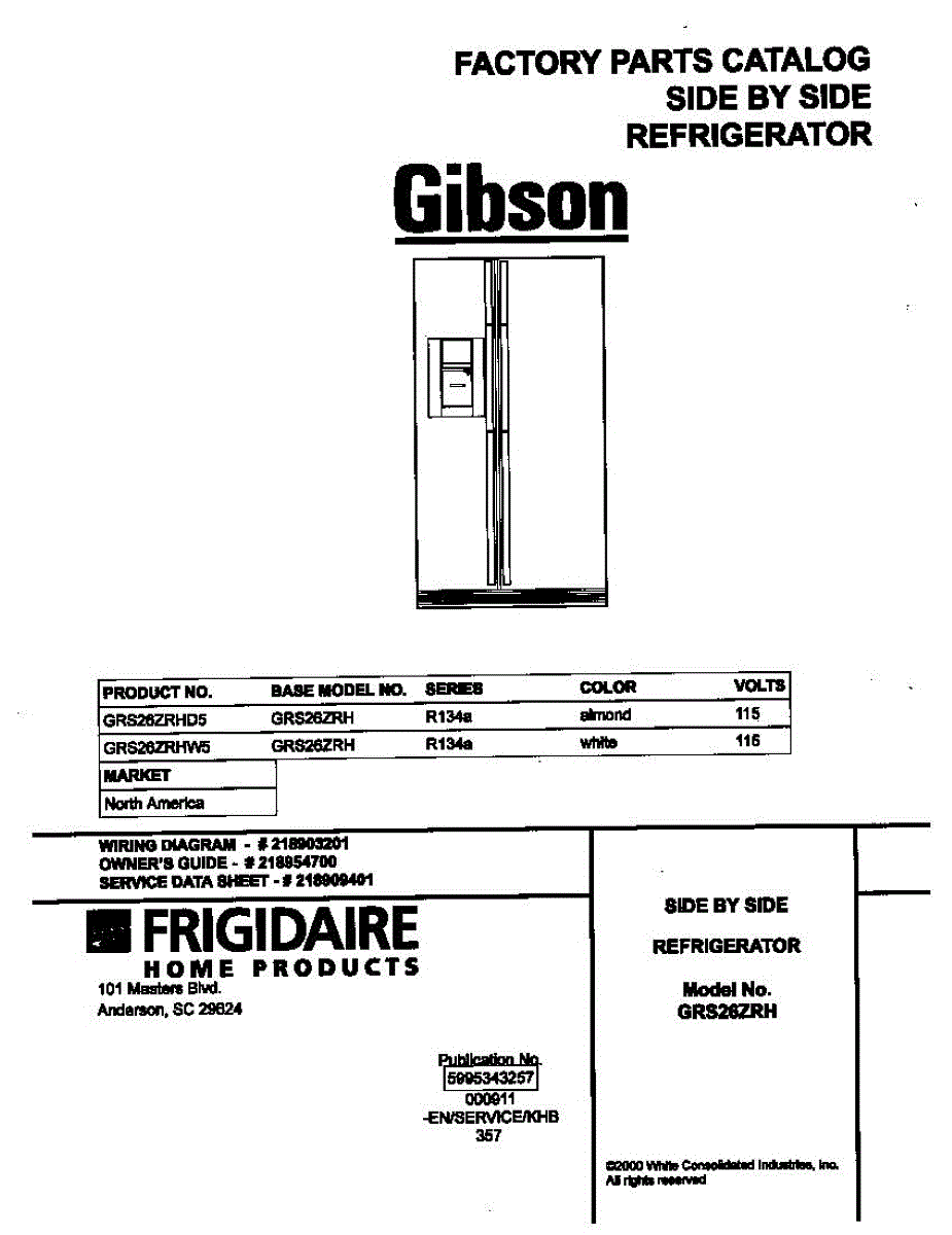 Parts for Frigidaire GRS26ZRHW5: 01 - Cover Parts