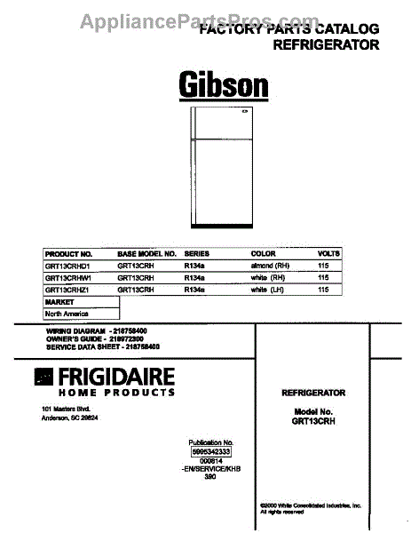 Parts for Frigidaire GRT13CRHW1: 01 - Cover Parts